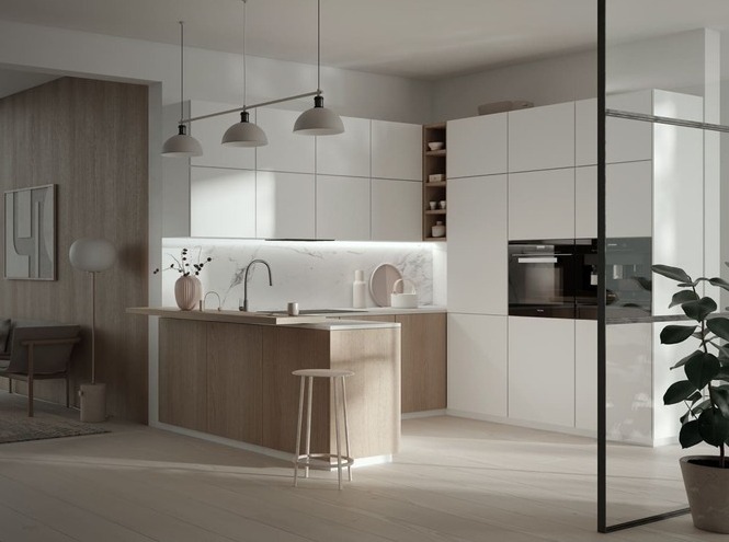 The overall interior is often complemented by other elements. These include lighting systems in the form of ceiling lights and cabinet lights. Electrical appliances (refrigerators, ovens, microwaves and dishwashers) are more often integrated into the fittings, increasing the ergonomics of kitchen sets. This makes them much more convenient to use.