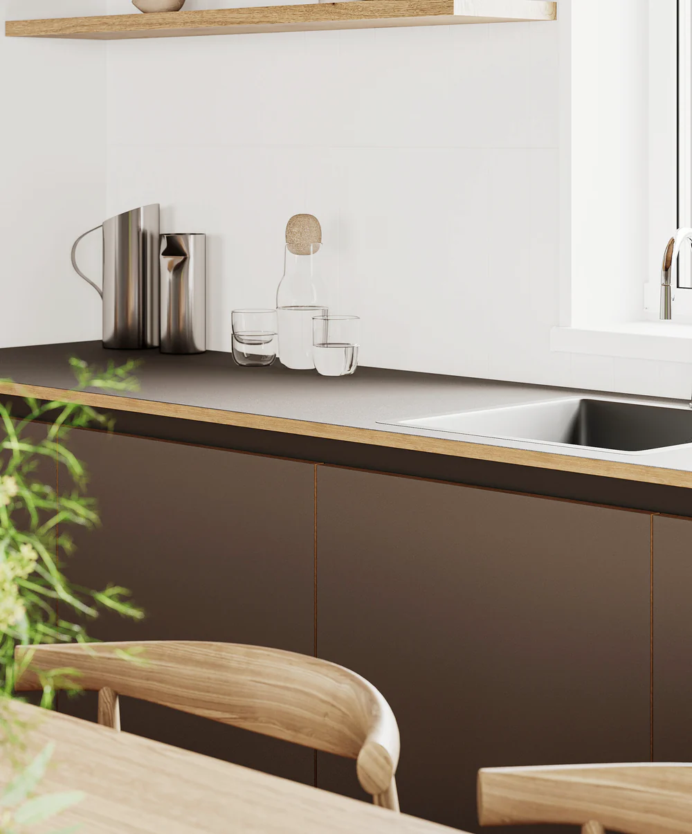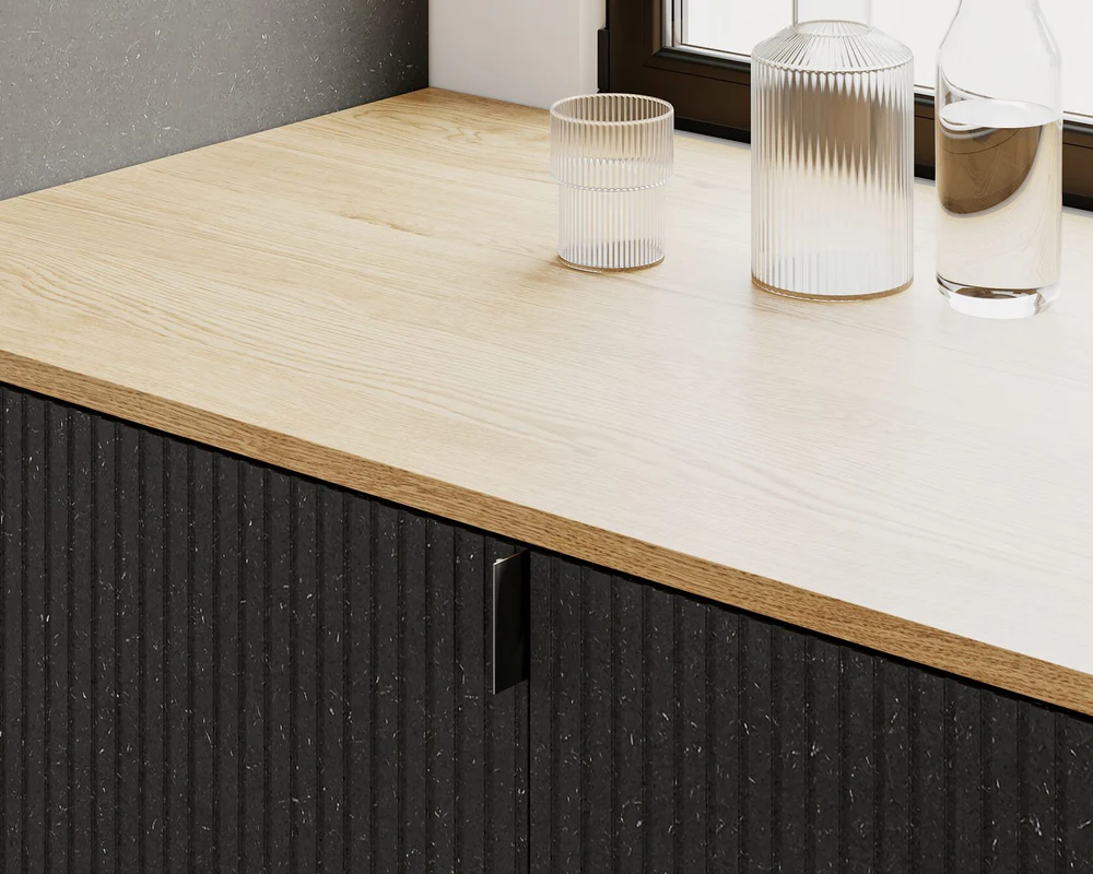 The range of chipboard countertops with HPL coating is presented in various decors and textures. Chipboard with HPL coating is wear-resistant to scratches and chips. Can be used with sinks for tabletop installation only.