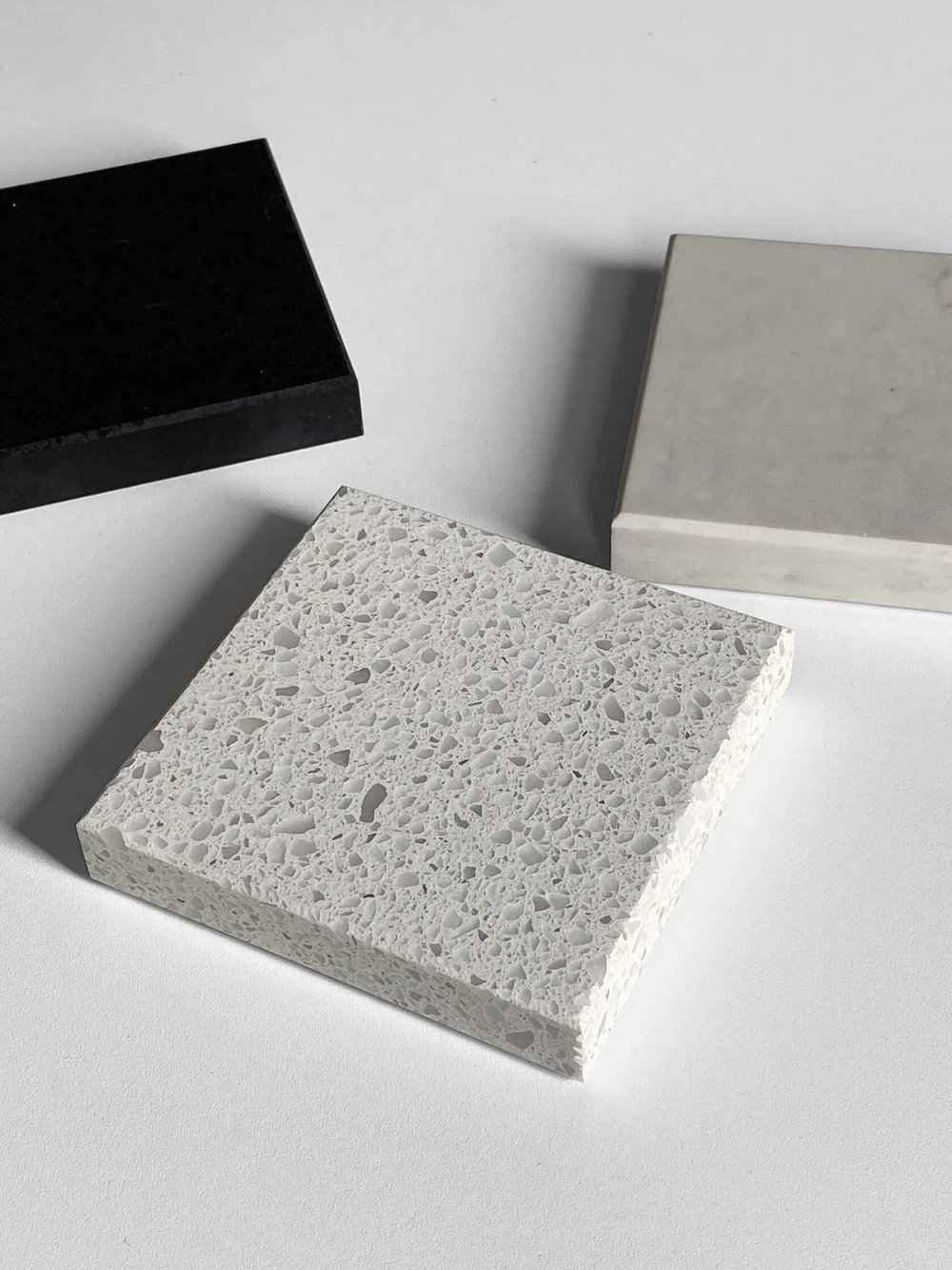 Thickness 12 or 20 mm. The base is made of quartz agglomerate, which is created on industrial technological lines. It consists of quartz chips, polymer resin and natural pigment.