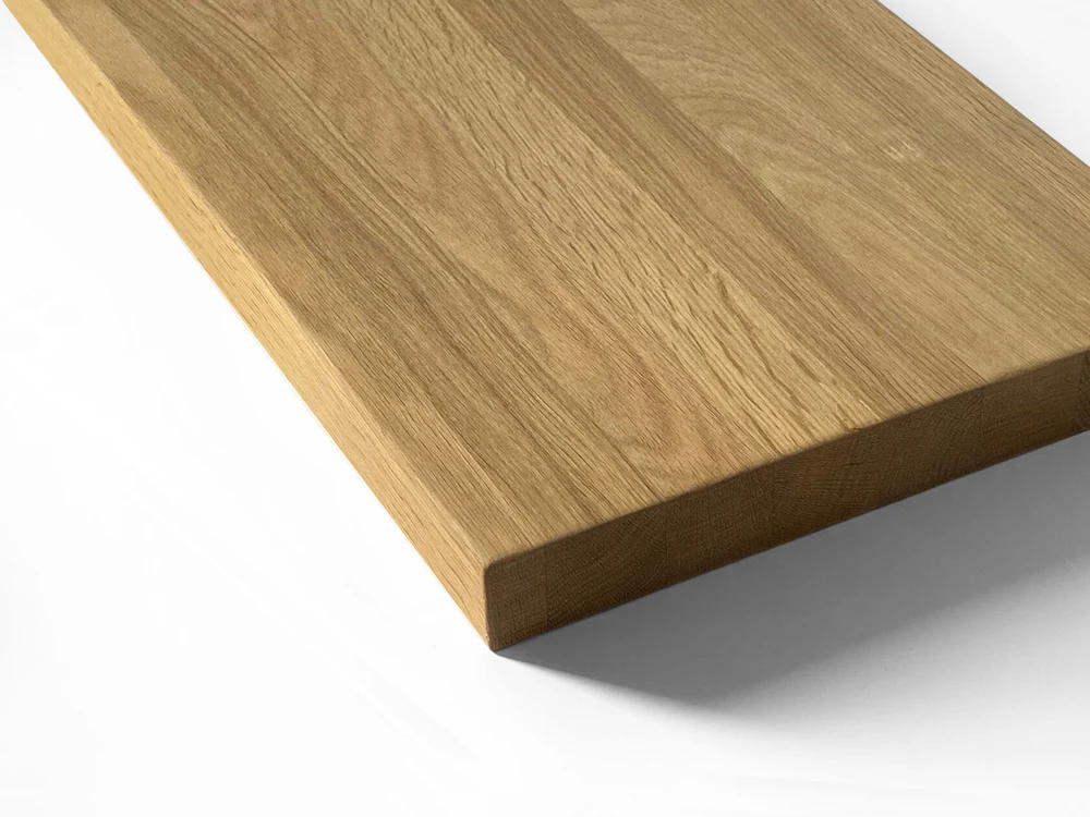 Thickness 40 mm. The base is an oak board, covered with three layers of water-repellent varnish on all sides. Can be in a natural shade and several tints.