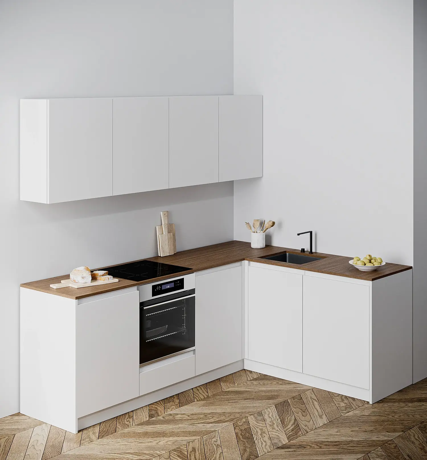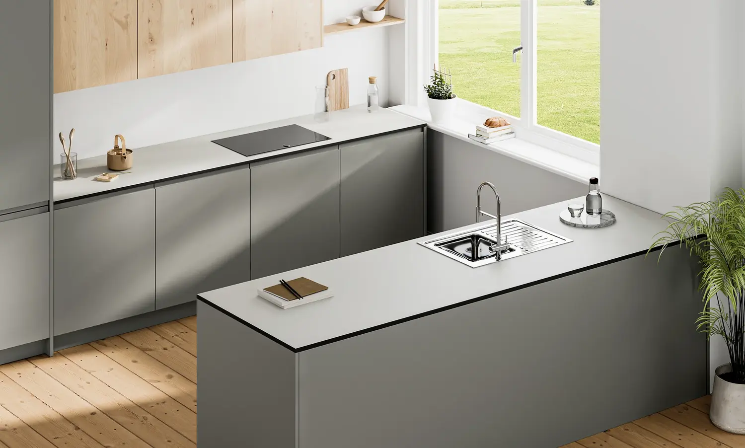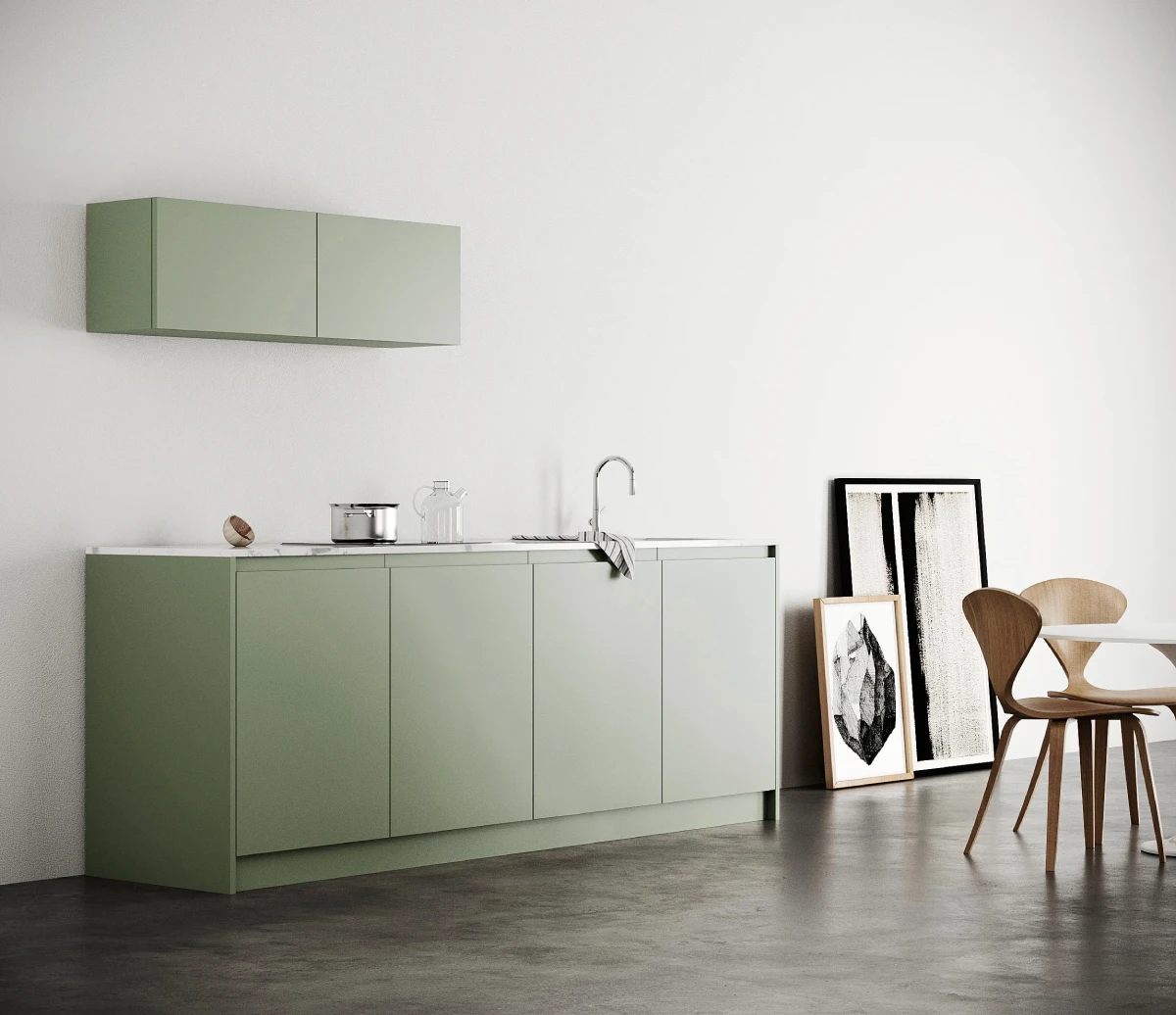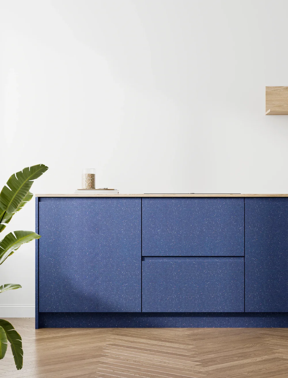 When creating Joy, the designers supported the trend of rational consumption and environmental friendliness. The meaningful shape of the facade with a milled handle does not require unnecessary attributes for opening, and the selected natural materials are made of recycled wood.