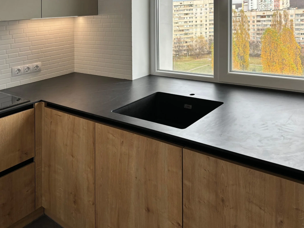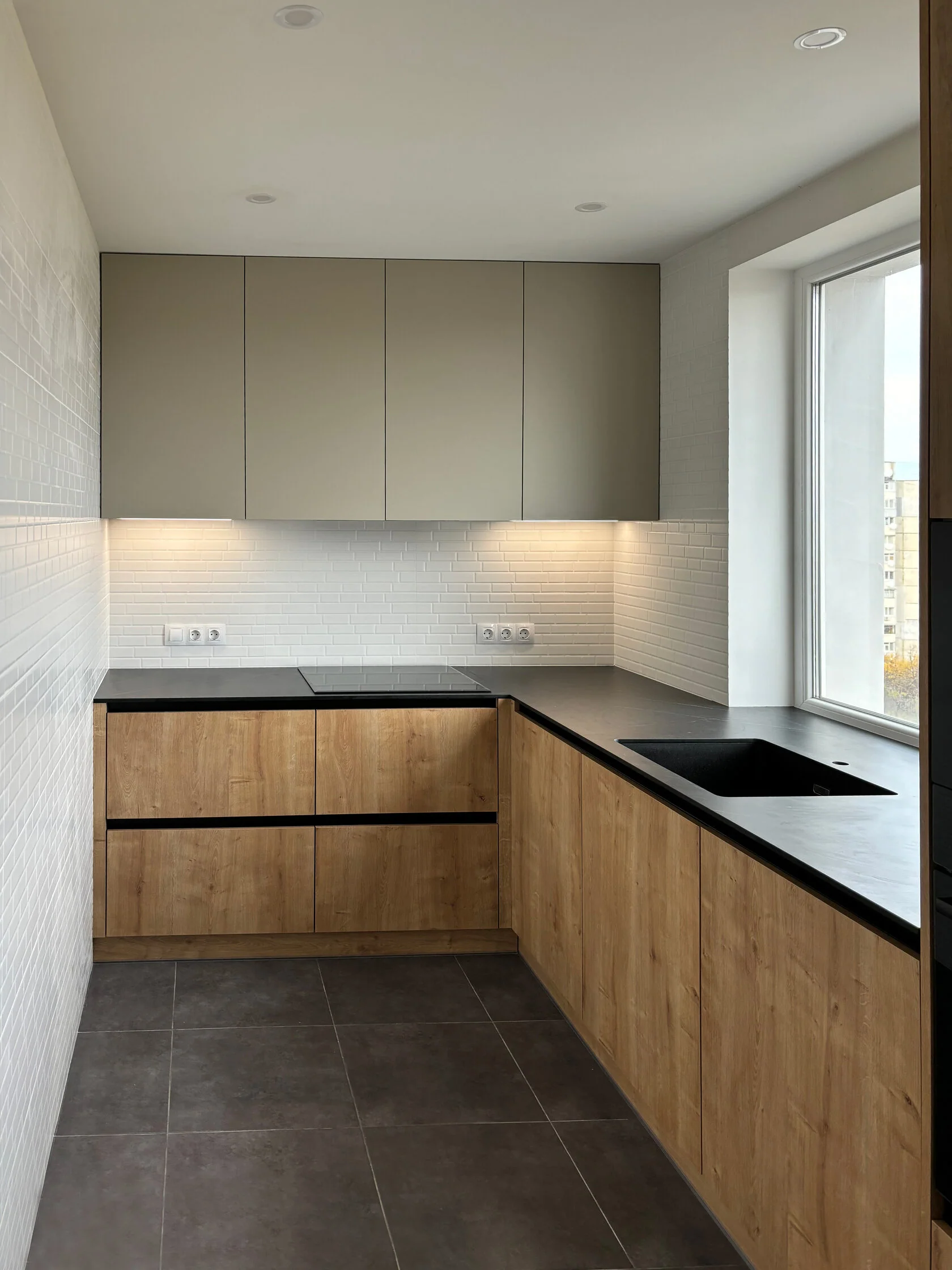 Laminate facades Neopolitan oak and Soft Touch sea pebbles