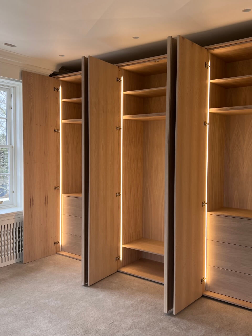 Our bespoke wardrobes are crafted from the finest materials, chosen for their durability, quality, and aesthetic appeal. With options like hardwood, sustainable materials, and a wide range of finishes, you can select exactly what matches your taste and complements your space.